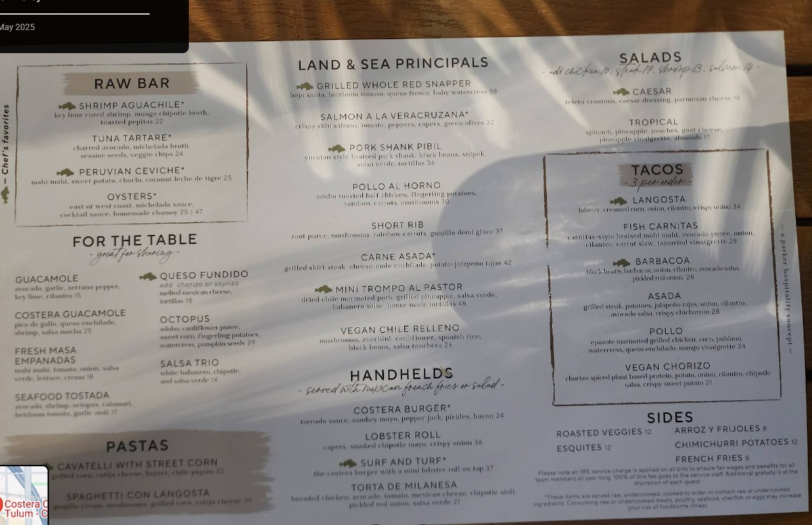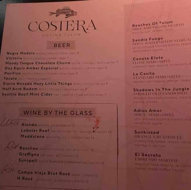 Costera Cocina Tulum is an absolute gem in Chicago! From the moment you walk in, you're transported to a relaxed, coastal oasis with a great ambiance that perfectly blends modern elegance with Tulum-inspired charm. The service was wonderful – warm, attentive, and genuinely welcoming. Every dish we tried was a standout – fresh, vibrant, and bursting with flavor. The food was truly incredible, with thoughtful presentation and bold, authentic taste. Whether you're looking for a date night spot or a place to unwind with friends/family, Costera Cocina Tulum is a must-visit